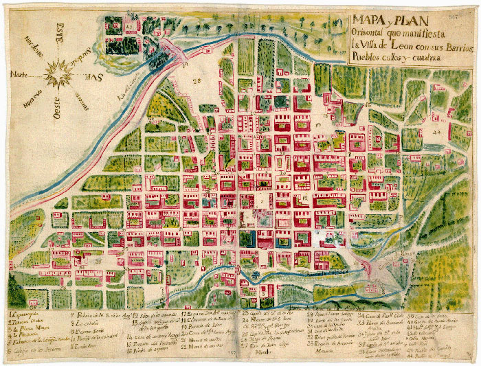 Igual que las de los mapas con los que abro este post, la mayoría de ciudades del Nuevo Mundo que se fundan tras la ese decreto lo hacen siguiendo pautas muy claras acerca de dónde asentarlas, el tipo de terreno, de clima, la orografía, altura, etc. Se proyectan todas conforme a la lógica hipodámica y en todos los casos se hace de libro. El decreto que se usa se basa en la teoría del De Regimene Principium de Santo Tomás, completado por instrucciones prácticas sobre cómo gestionar los asuntos que tienen que ver con los indígenas, el comercio, etc.