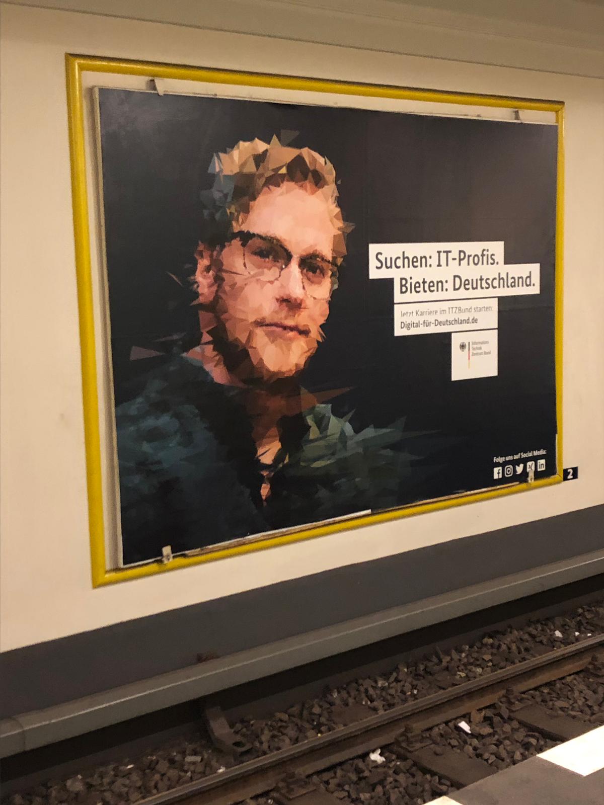 Tenía que pasar: tarde o temprano todos encontramos nuestro Doppelgänger. Y si el mío existía, era muy probable que fuera ahí, en Alemania. Ha aparecido en el metro de Berlín, en las vallas publicitarias, en una campaña del gobierno alemán por la especialización en IT (o algo así creo entender).